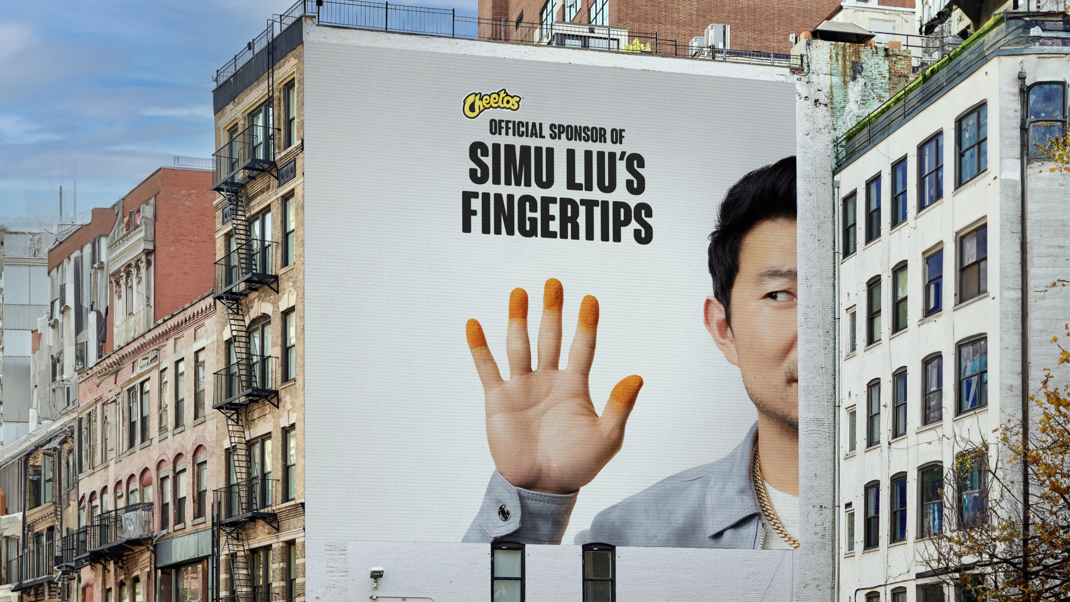 Cheetos is known for the iconic orange dust that gets all over your fingertips (a.k.a. Cheetle). So we hired Hollywood's actor Simu Liu and sponsored his fingertips. Yes, just his fingertips.